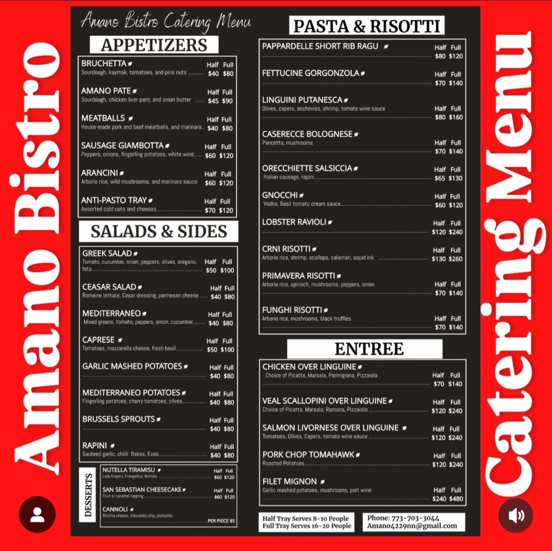 Welcome to Amano Bistro Chicago, a charming gem that brings authentic Italian flavor to the heart of Lincoln Avenue. The menu is a delightful journey through classic dishes, featuring standout options like the Bruschetta, which garners rave reviews for its fresh tomatoes and exquisite balsamic. For those seeking a twist, the Chicken Liver Pate paired with ciabatta and amarena cherries offers a luxurious start.